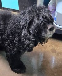 This little guy was surrendered to a shelter because someone “didn’t see the point of a dog that can’t see or hear”. Asher is 9.5 years old and very thin at 19 lbs. He came in badly matted, his ears and skin neglected and covered with fleas. He was a little growly (but never snappy) when picked up, but being unable to see or hear and being in pain from mats embedded with burs and spear grass probably contributed to his discomfort. Overall, Asher was in terrible shape.